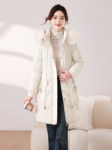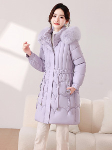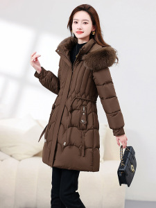 棉服女新款韩版修身收腰系带加厚保暖中长款大毛领连帽棉衣女批发