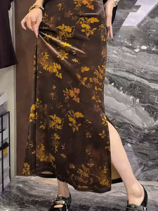 高品质丝绒鱼尾半身裙2025秋冬新款光泽感侧开叉复古风包臀长裙