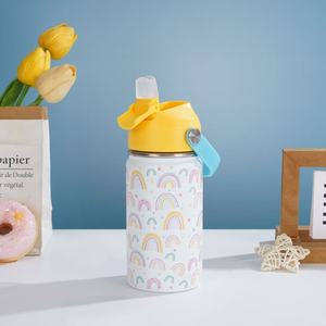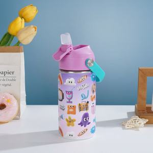 跨境304双层不锈钢卡通保温杯12oz小巧手提吸管杯户外便携太空壶