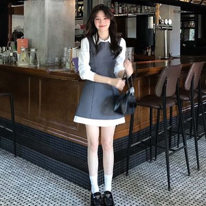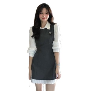 韩系拼接假两件长袖衬衫连衣裙女秋季修身显瘦收腰气质通勤短裙子
