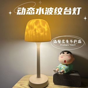 爆款高脚水波纹氛围台灯卧室床头学习高级小夜灯ins风投影灯礼物