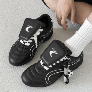 黑色休闲运动鞋男女同款2025新款时尚德训鞋百搭复古软底女鞋