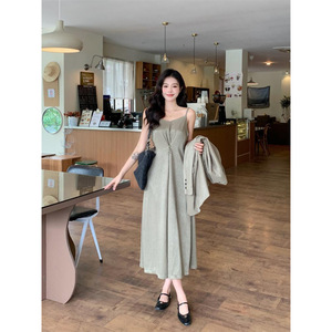 大码女装早秋肌理质感高级显白西装小设计收腰吊带裙气质两件套装