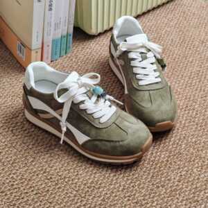 韩版真皮复古厚底内增高德训鞋女2025秋新舒适百搭休闲运动阿甘鞋