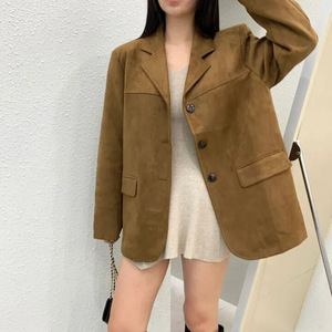 chic韩国秋冬美式复古咖色鹿皮绒西装外套美拉德长袖西服女
