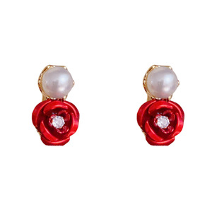 韩版时尚温柔百搭珍珠玫瑰花耳扣个性轻奢小清新气质简约耳环批发