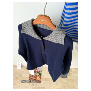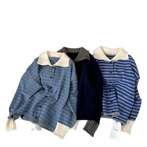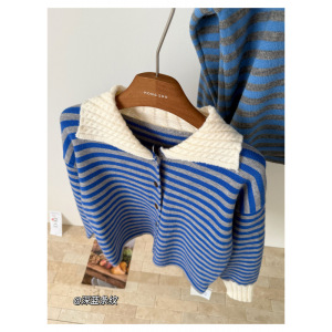 时髦书呆子 复古少女穿搭休闲撞色领条纹毛衣开衫