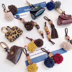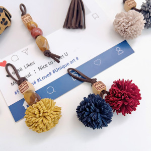 秋冬MIU系美拉德双色流苏花球鞋挂鞋扣德训鞋穆勒鞋DIY鞋上装饰扣