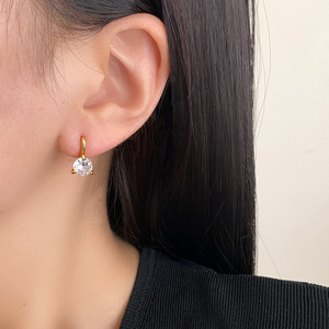 铜镀18K真金保色极简高级感精致超闪单钻耳夹轻奢气质百搭耳钉