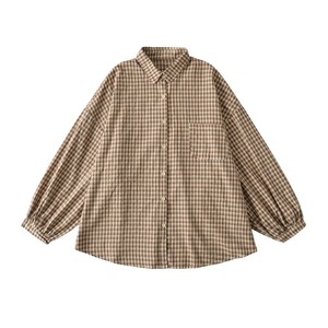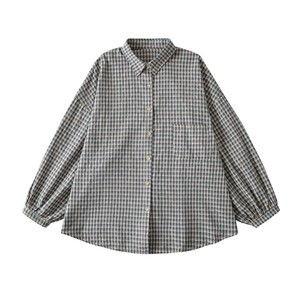 日系软妹甜美拼接长袖衬衣2025秋冬新款宽松长袖复古格子衬衫上衣