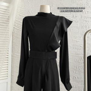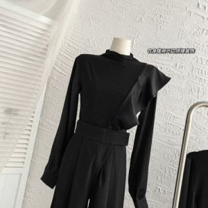 2025跨境女装半高领长袖T恤女时尚修身显瘦上衣+高腰西装裤套装