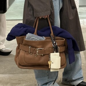韩国OS复古腋下公文包25新款皮带锁扣手提包通勤托特包大容量单肩