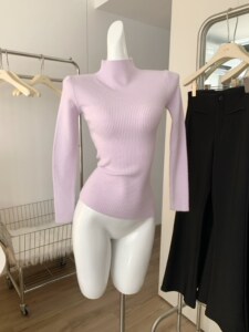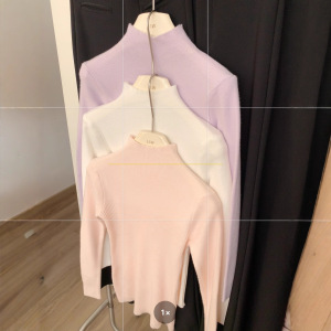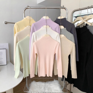 粉紫色半高领打底衫女秋季毛衣韩系修身小香风内搭中领针织衫上衣