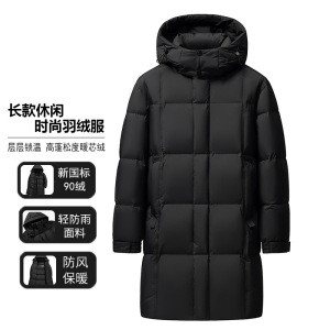 男式羽绒服2025秋冬长款连帽版90白鸭绒保暖加厚青年休闲防寒外套