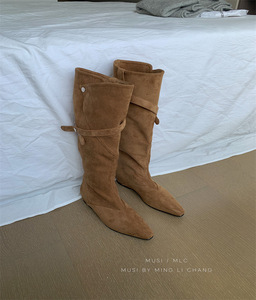 2025秋冬新款方头松弛感两穿高筒靴子加绒简约包腿坡跟长靴女