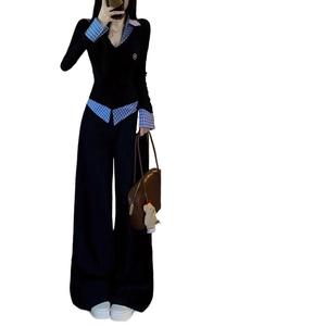 高级感纯欲风polo领春秋韩版时尚学院风修身收腰休闲两件套女装