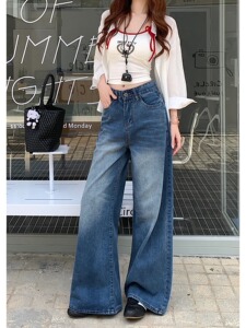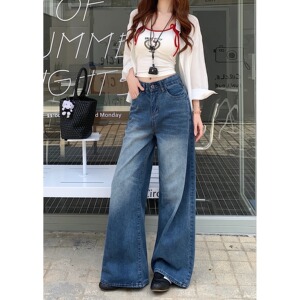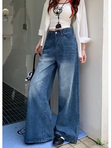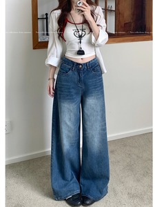 复古水洗宽松阔腿牛仔裤女秋季2025新款时尚显瘦拖地垂感百搭裤子