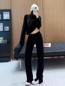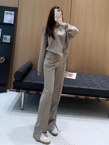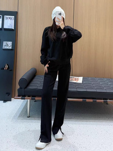 秋冬季圆领正肩卫衣南油女重磅保暖上衣休闲遮肉显瘦阔腿裤两件套