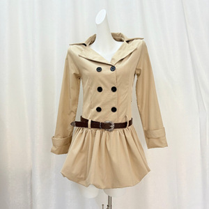 2025复古大翻领显瘦蓬蓬裙双排扣风衣式收腰短裙子春秋季新款潮女
