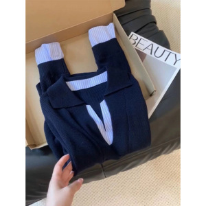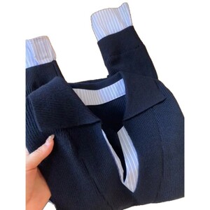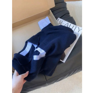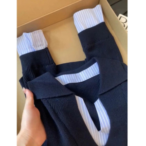 设计感假两件撞色拼接条纹针织衫女早秋新款小众显瘦V领长袖上衣