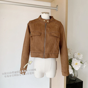 小个子秋季上衣女新款短款夹克棕色美拉德早秋好看外套