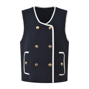 2025秋季新款法式复古时尚双排扣撞色圆领针织衫背心马甲上衣