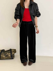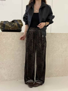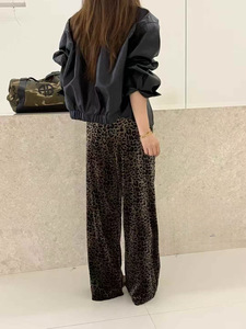 2025美式复古丝绒豹纹阔腿裤女秋季新款高腰宽松垂感直筒休闲长裤