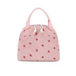 跨境热售灯芯绒草莓大容量午餐包旅行出差春游野餐冰包工作保温包