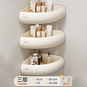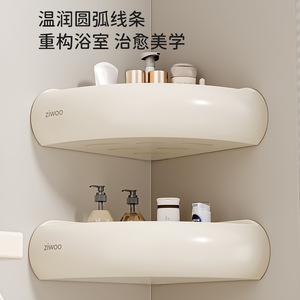 奶油风浴室置物架圆弧三角篮架子壁挂免打孔卫生间浴室墙角收纳架