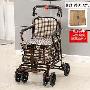 老人能推能坐的椅子老年助步车可推可坐老人助力手推车折叠购物车