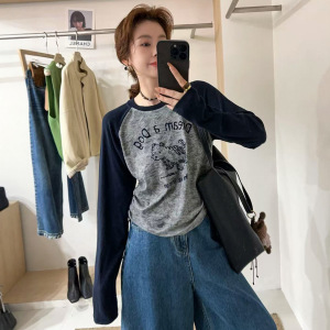 复古印花插肩袖小版T恤女欧洲站2025秋装新款欧货女装打底小衫潮