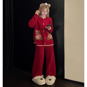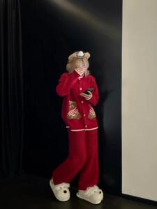 【现货】卡通带胸垫德绒睡衣女2025秋冬季新款加厚保暖家居服套装