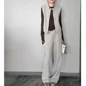 老钱松弛感穿搭一整套早秋大方得体高级感小香风灰色马甲裤子套装