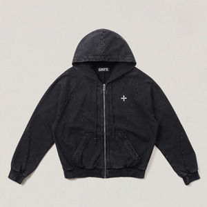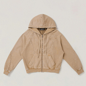SMFK野性复古阔身运动拉链帽衫水洗做旧纯棉连帽外套