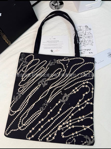 博主同款跨境满印立体珍珠链条图案牛仔布员工uniform单肩帆布包