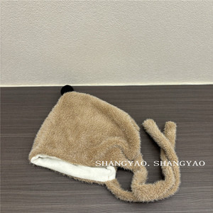 儿童帽子冬季幼儿小球护耳帽小宝宝尖尖帽纯色可爱时尚保暖毛绒帽
