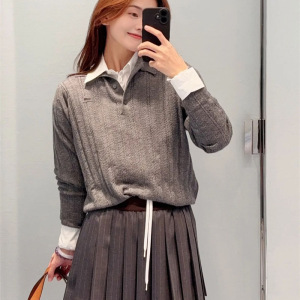 25秋季新款南油高定Miu简约休闲百搭显瘦半排扣字母logo羊毛衫