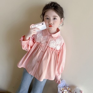 女童2025春秋季新款童装可爱网纱绣花拼接衬衣加牛仔长裤两件套潮
