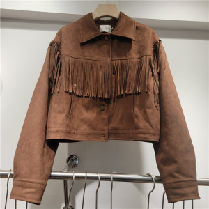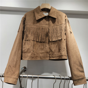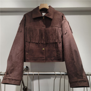 韩版卡其色麂皮流苏设计短外套女2025秋季新款高级感休闲夹克上衣