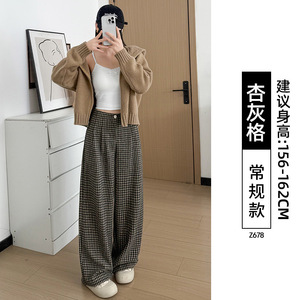 美式复古格子阔腿裤女2025秋季新款女装慵懒风软糯裤子女款A7422