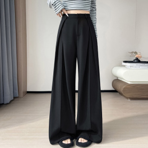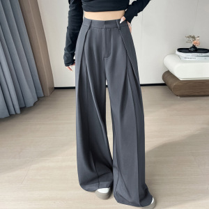 25秋冬新款高级灰西装裤高腰压褶显瘦窄版阔腿裤直筒休闲长裤女