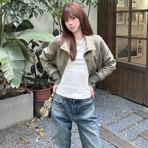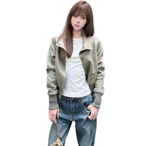 美式复古立领麂皮开衫外套女早秋季2025新款休闲百搭夹克短款上衣