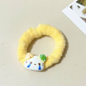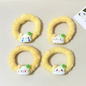 可爱黄色奶油猫咪毛绒小肠发圈甜美少女高弹力头绳儿童扎发皮筋