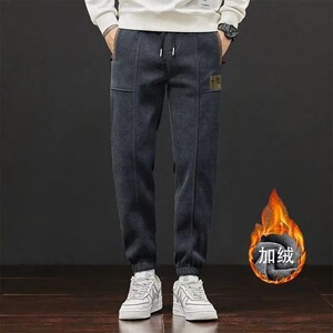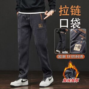 休闲裤男宽松直筒卫裤2025新款秋冬季刺绣博奥绒加绒加厚运动长裤