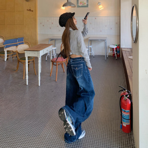 美式阔腿牛仔裤女2025年秋冬新款直筒宽松高腰垂感显瘦拖地长裤子