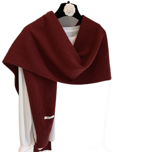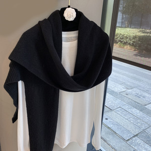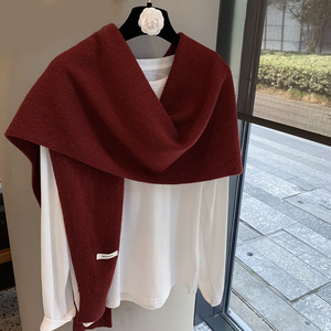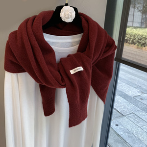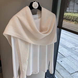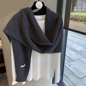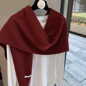 100%澳洲羊毛2025新款针织披肩女外搭配衬衫纯色保暖小围巾春秋薄