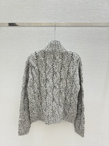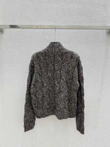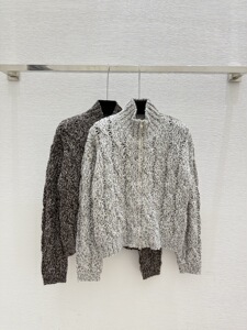 深圳南油正确高版本BC家25早秋新款慵懒风珠片镂空高领针织开衫