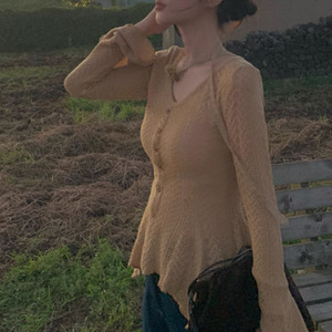 2025秋季新款 澳洲玫瑰~高级感喇叭袖收腰显瘦飘带小衫黄色针织衫