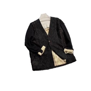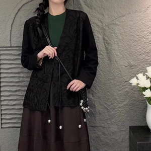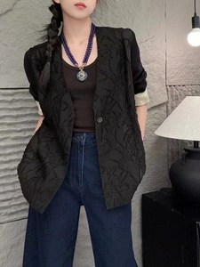 2025秋款复古气质一粒扣V领拼接烧花西装外套时尚百搭西服不退换