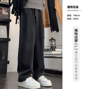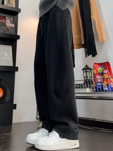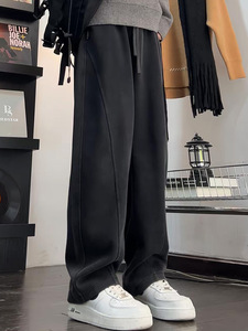 水洗baggy风慵懒松驰感运动男士卫裤男生春秋直筒男裤阔腿弯刀裤